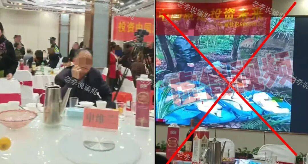 该项目公开在某酒店内召开集会,宣讲兜售虚假投资理财产品,承诺高额回报。同时不断播放请“演员”扮演制作的虚假视频诱导参与者积极认购。参与者大多为中老年人。
