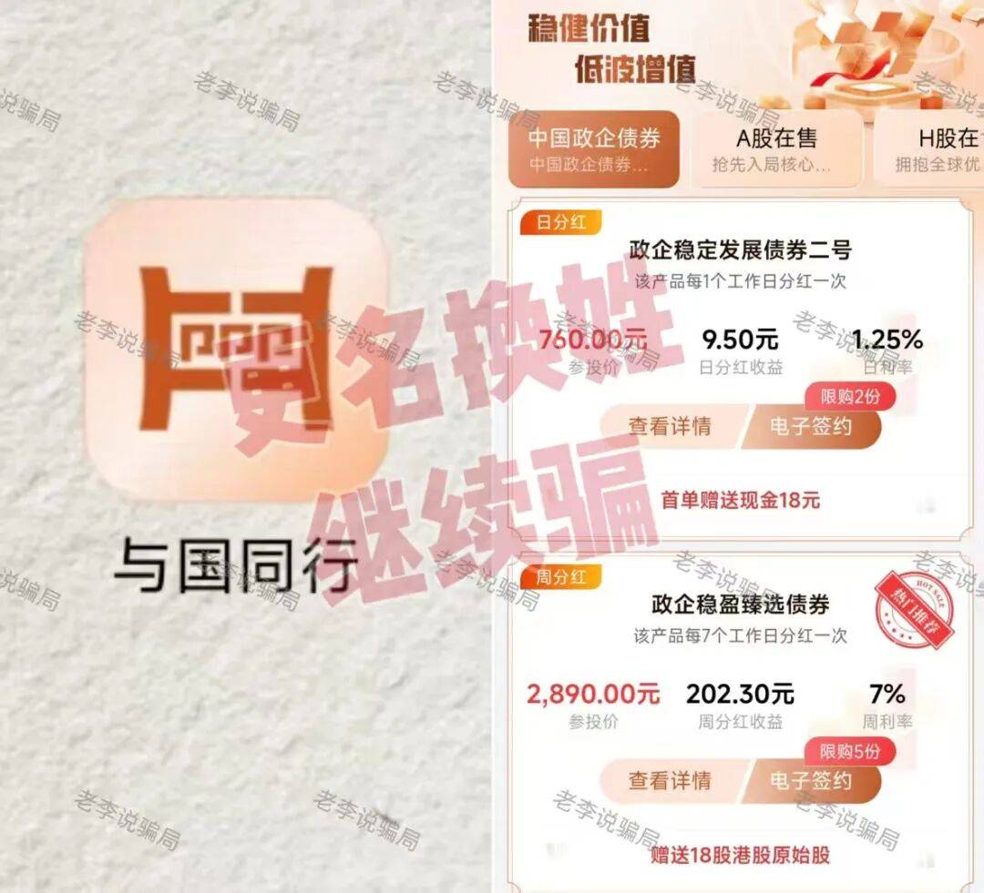 在“中国政企合作基金”以及各地官方不断打假的情况下,更名“与国同行”继续行骗。