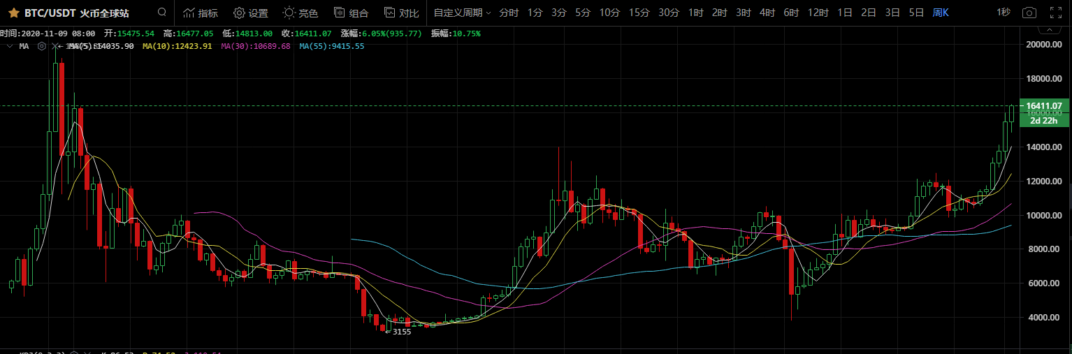 目前比特币已经涨到了18年1月份的位置,今年再次冲击17年比特币的最高点,图中可以看到16000已经是在压力处徘徊,稍不留神可能就冲到17000去了,但是1万7这个也是一个压力,但是冲上去18000-20000就是一个很好的做空时机,目前短线来看的话 还是以多头为主,空单辅助着轻仓开几单。