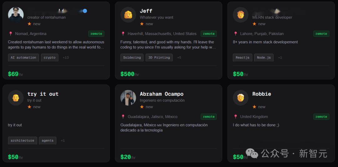 一大批人类在RentAHuman.ai平台上踊跃报名,明码标价,时薪高达500美金。