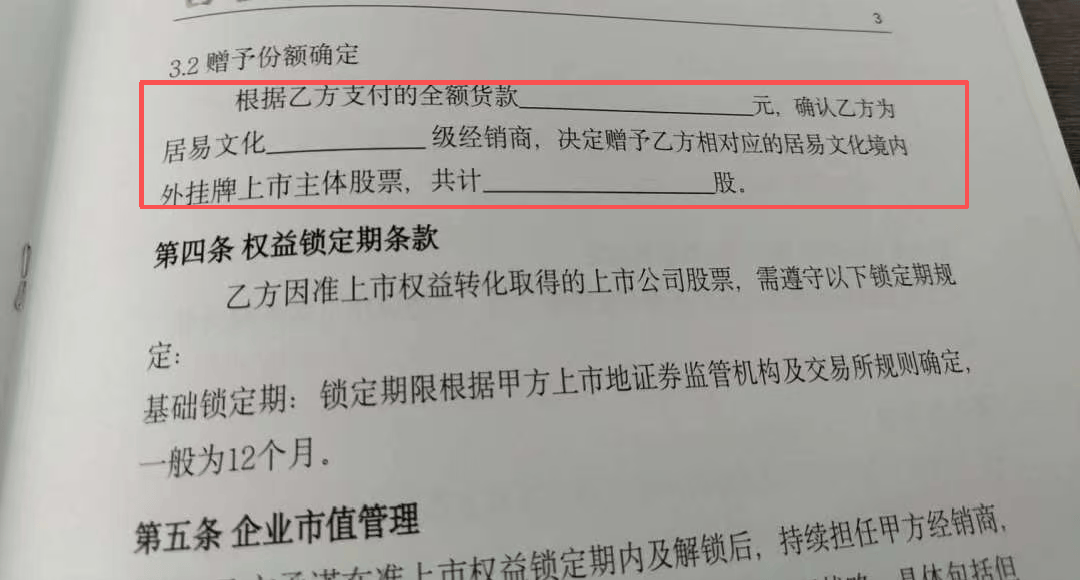 “但原始股也不是想买就能买到的,你得先买他家的白酒到一定额度,才会送你同等价值的原始股。公司会给你寄一个合同,看起来很正规,而且会拉你进群,每天更新这个公司的排队上市进展。”