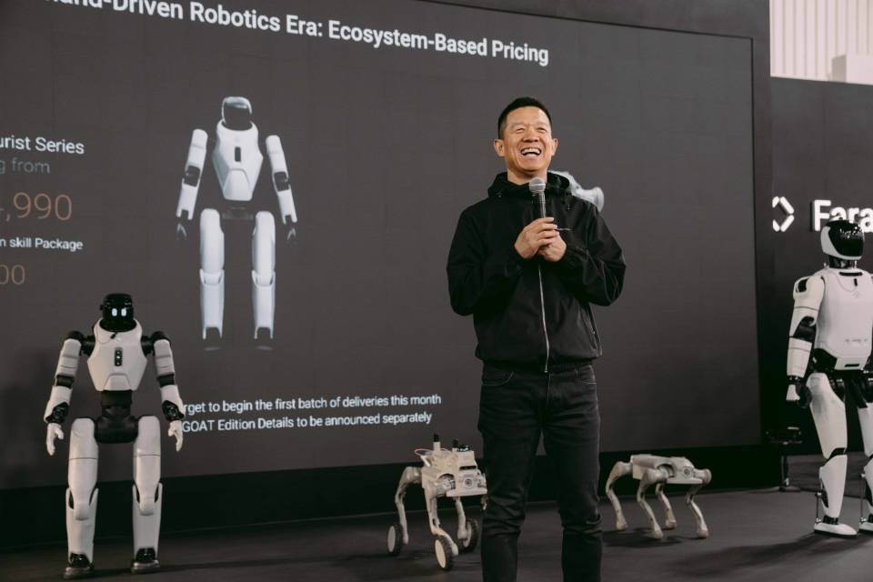 再看他高调发布的三款机器人产品,看似参数亮眼,实则漏洞百出。贾跃亭宣称,Futureist算力达到200TOPS,Master拥有30个自由度,可跨越35厘米障碍、攀爬40°斜坡。